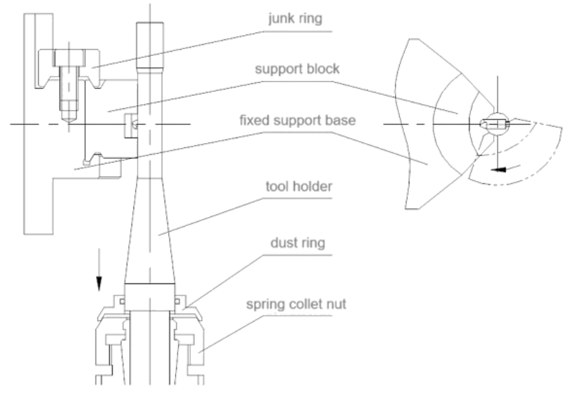 ● Struktur pendukung pemotong terbang mengacu pada karakteristik jenis alat mesin yang sama di Italia. Blok dukungan didukung oleh permukaan busur, yang memiliki efek dukungan yang baik; Pangeran pemotong diperbaiki dengan kacang pegas; Pada saat yang sama, ujung bergerak digunakan di bagian atas pangan pemotong untuk meningkatkan kekakuan dan keakuratan pendukung punjung pemotong. Fly-cutter memiliki struktur yang masuk akal, memberikan kekakuan tinggi dan presisi tinggi.
